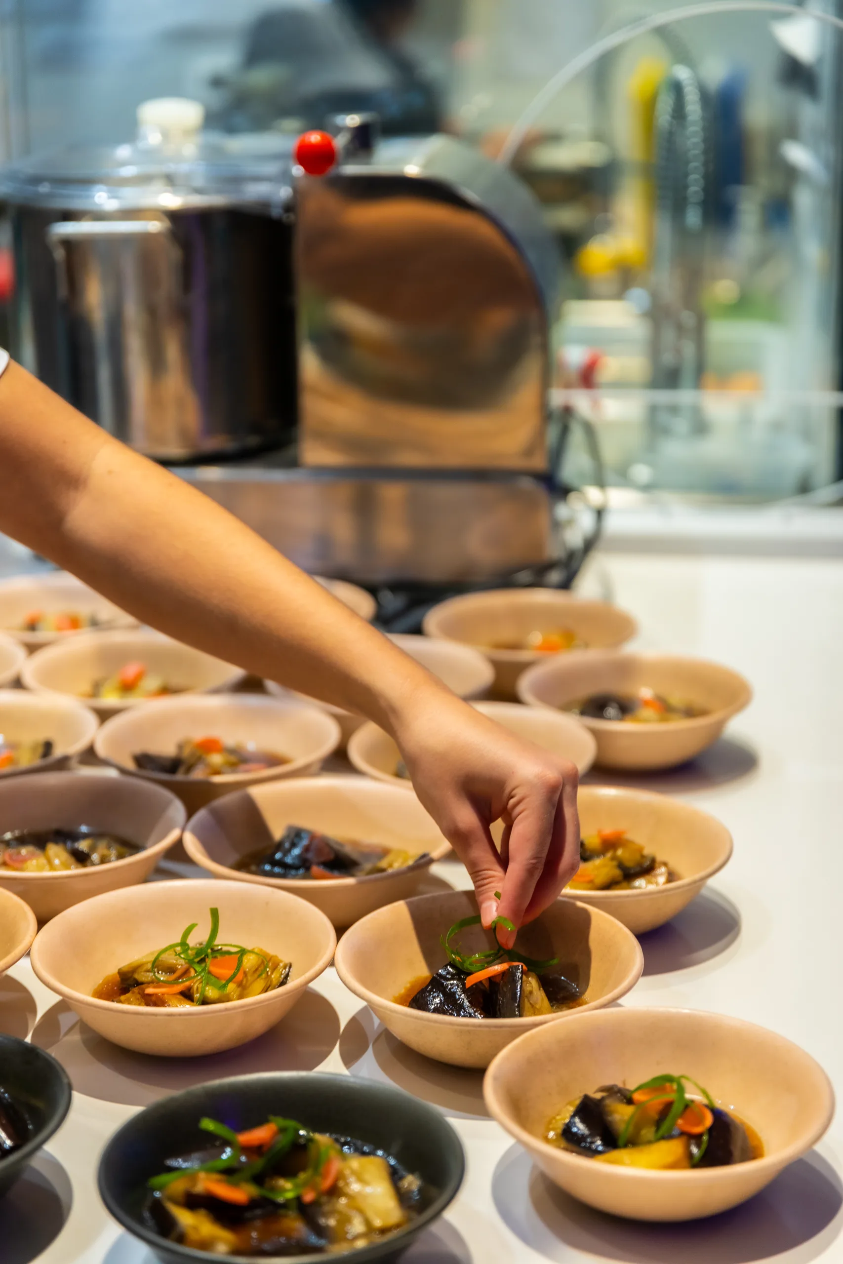 Jajčevci v sojini omaki, jogurt, hrustljavi brstovni ohrovt, domača focaccia in stepeno maslo rdeče pese.