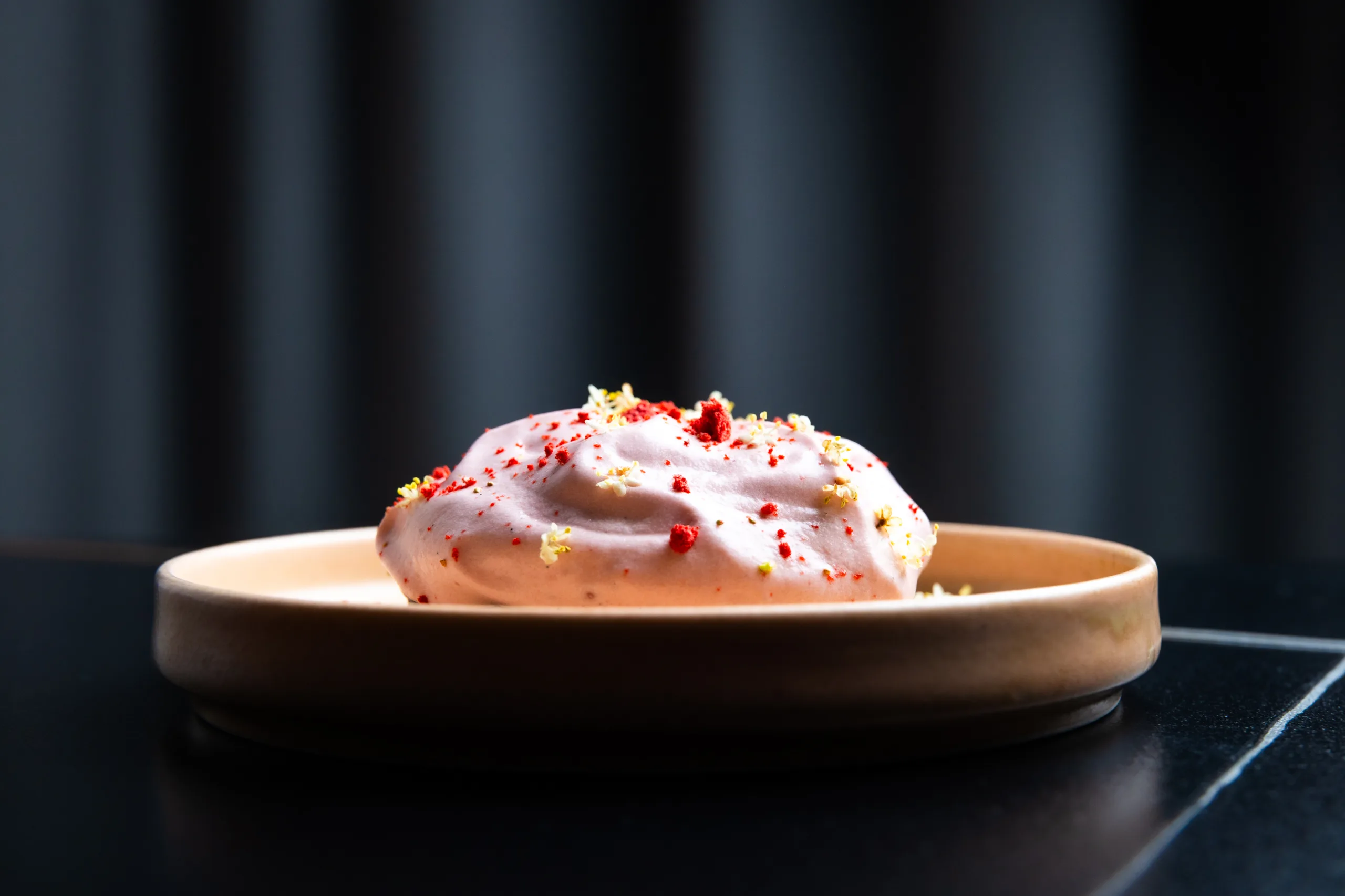 → Sladica, ki igra z vročim in hladnim, nežnim in drznim. Jagodni oblak in čilijev čokoladni prah sta popolna zaključka te pravljične poti.
