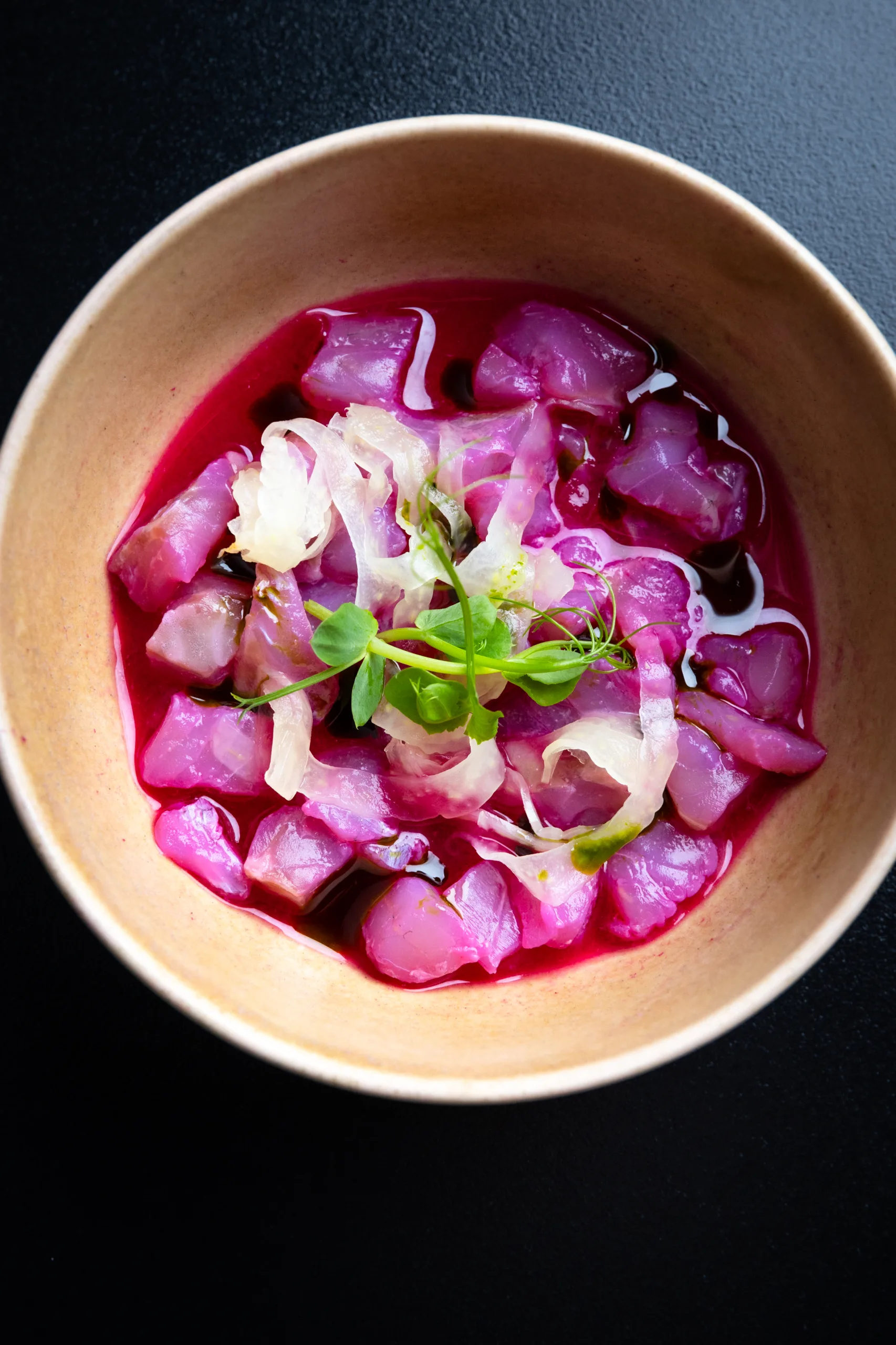 → Kombinacija svežine in zemlje. Pesin ceviche je goste presenetil s svojo teksturo in barvno eleganco.